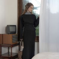 PM_Slim-waist knit top and skirt set_BLACK