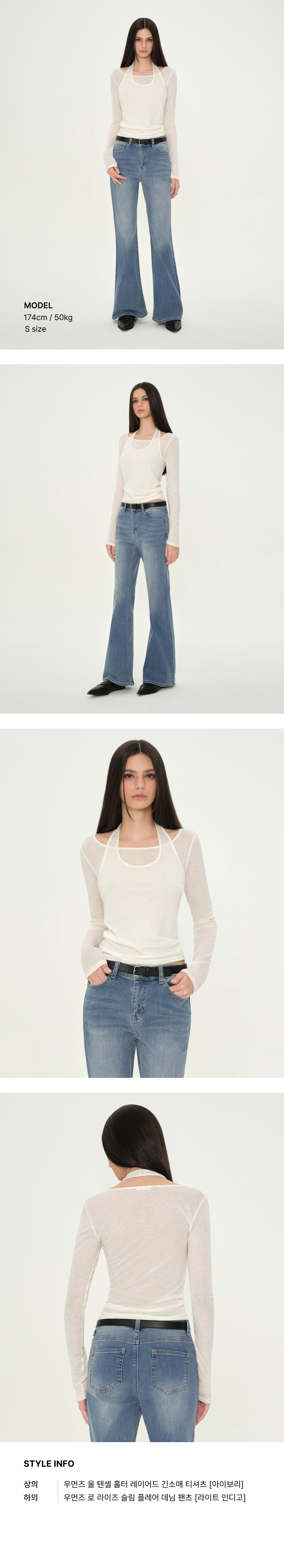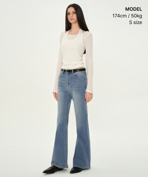 우먼즈 로 라이즈 슬림 플레어 데님 팬츠 [라이트 인디고]