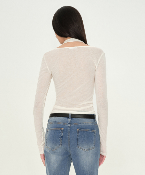 우먼즈 울 텐셀 홀터 레이어드 긴소매 티셔츠 [아이보리]