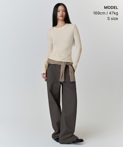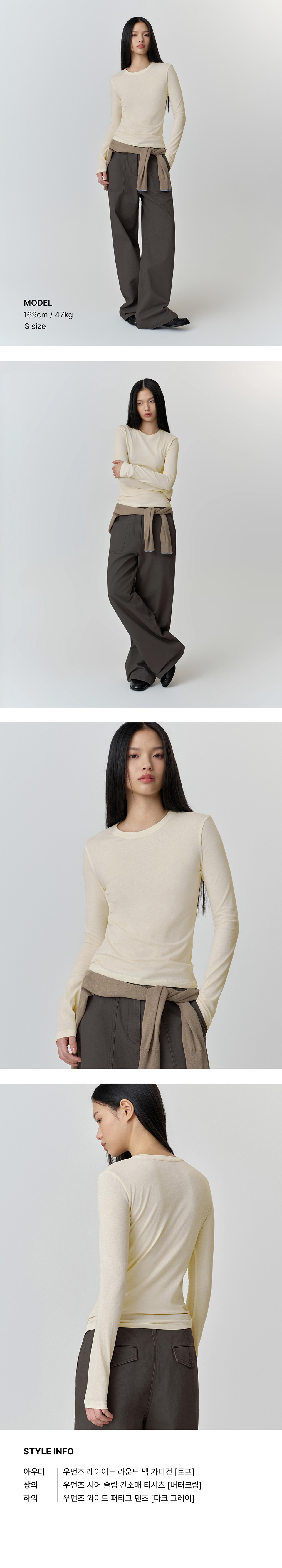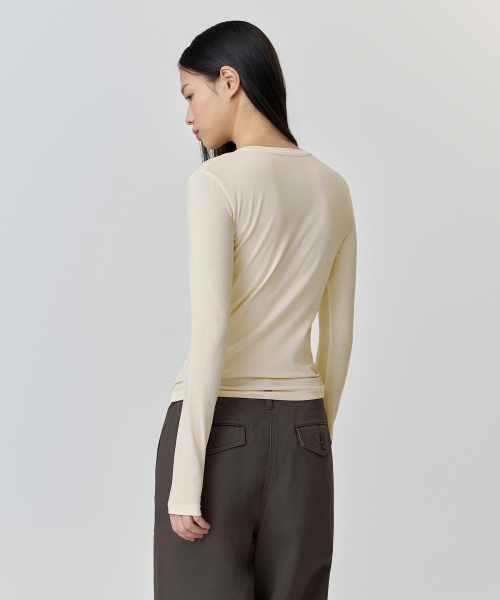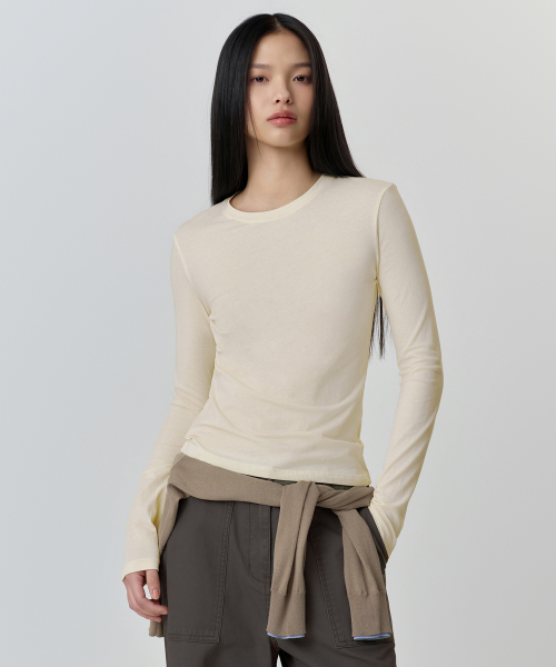 우먼즈 시어 슬림 긴소매 티셔츠 [버터 크림]
