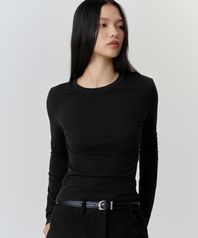 우먼즈 시어 슬림 긴소매 티셔츠 [블랙]