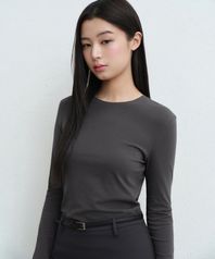 우먼즈 시어 슬림 긴소매 티셔츠 [다크 그레이]