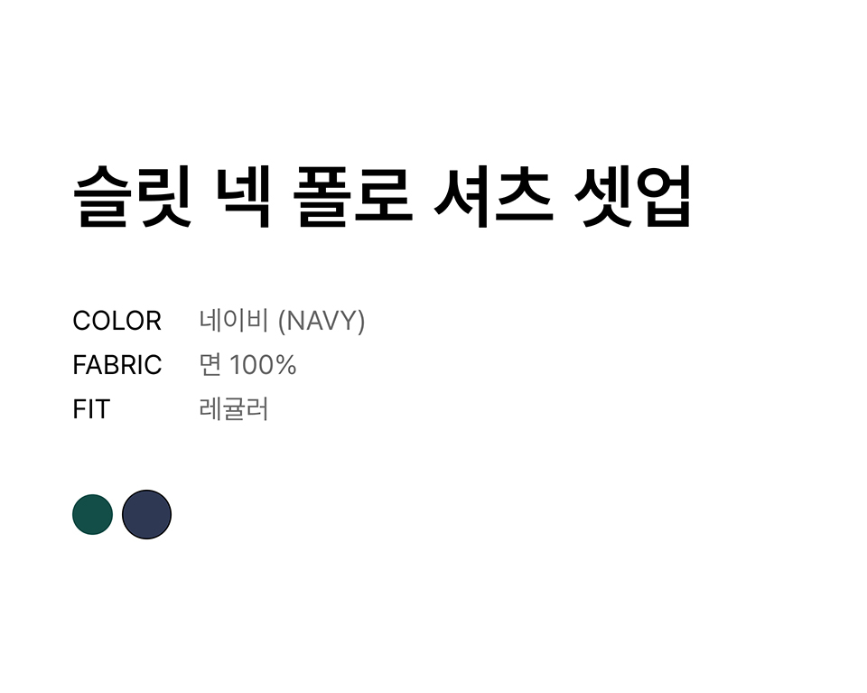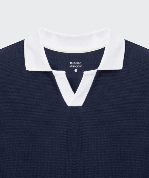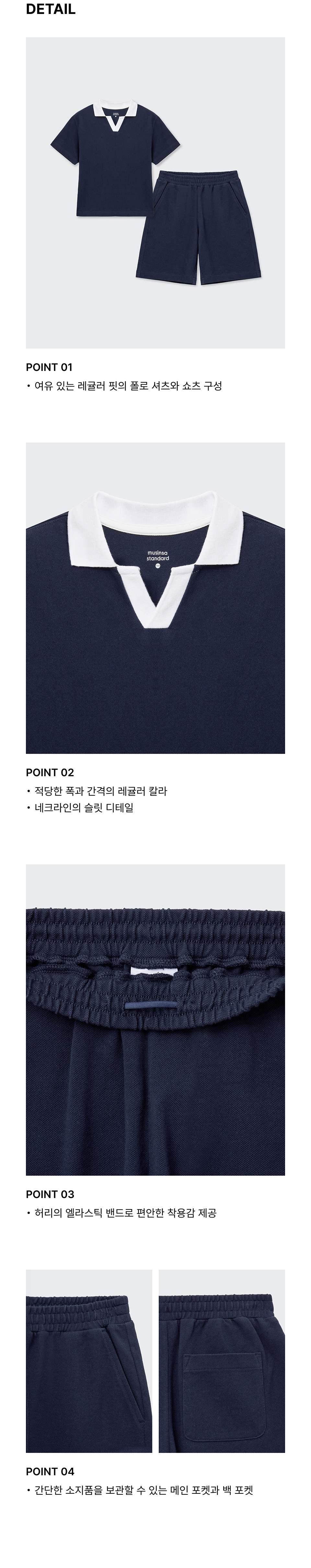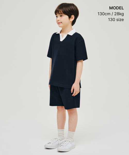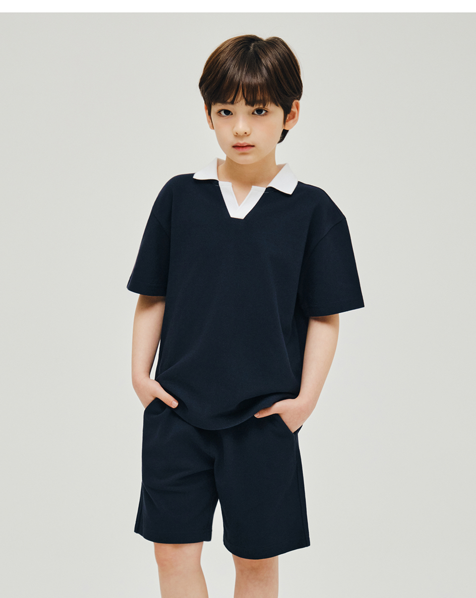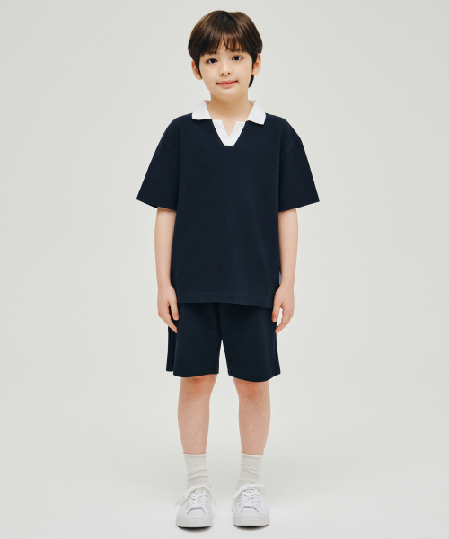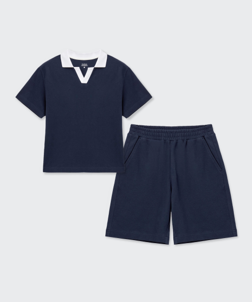 슬릿 넥 폴로 셔츠 셋업 [네이비]