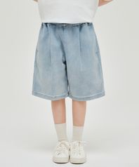 데님 저지 원 턱 와이드 밴딩 쇼츠 [라이트 인디고]