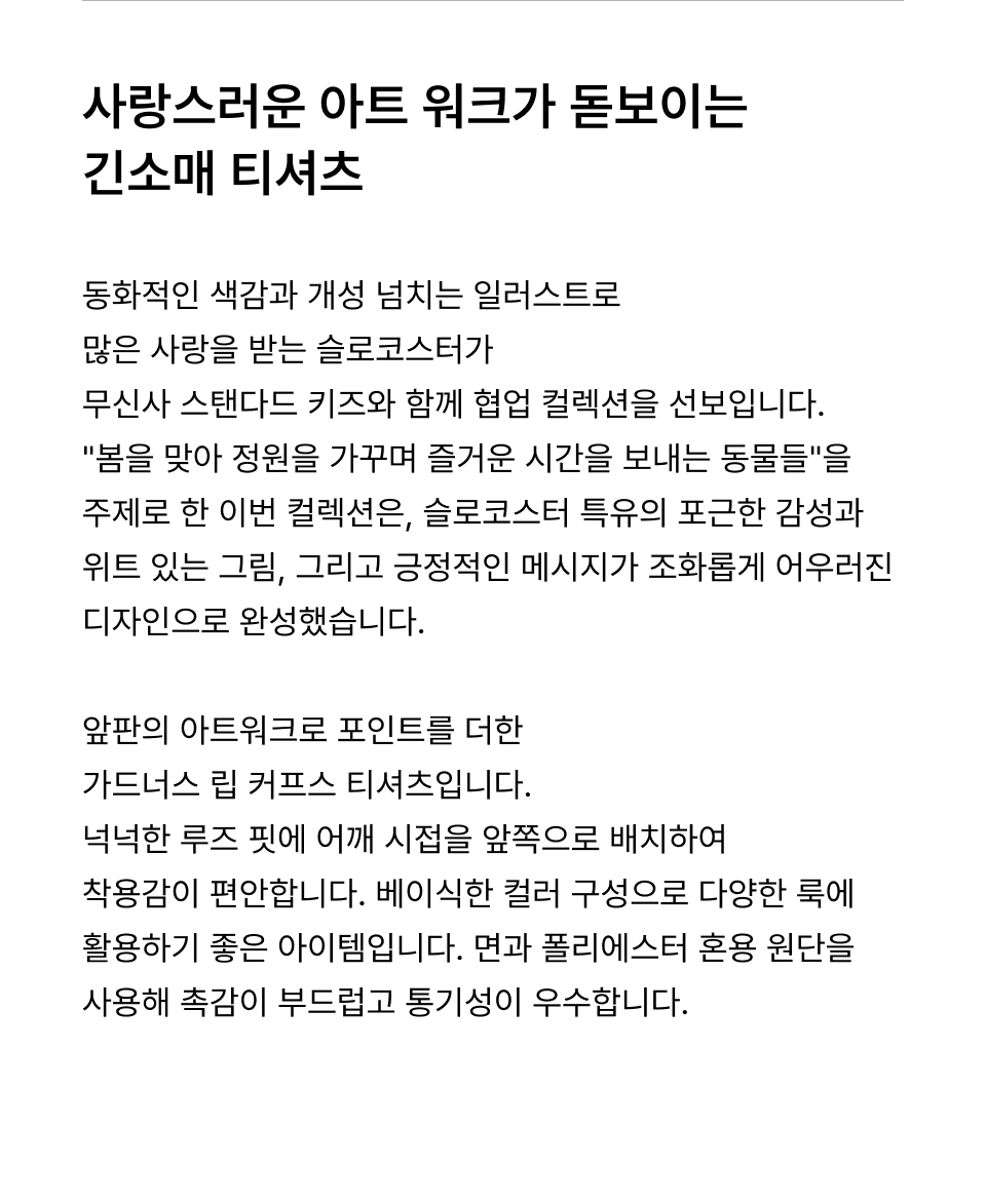 [슬로코스터 컬래버] 가드너스 립 커프스 긴소매 티셔츠 [화이트]
