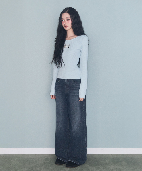 STITCH LINE WIDE DENIM PT DARK NAVY