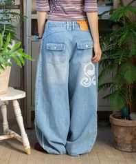 WXP070 도또우타 아플리케 레이스 데님팬츠 (BLUE)