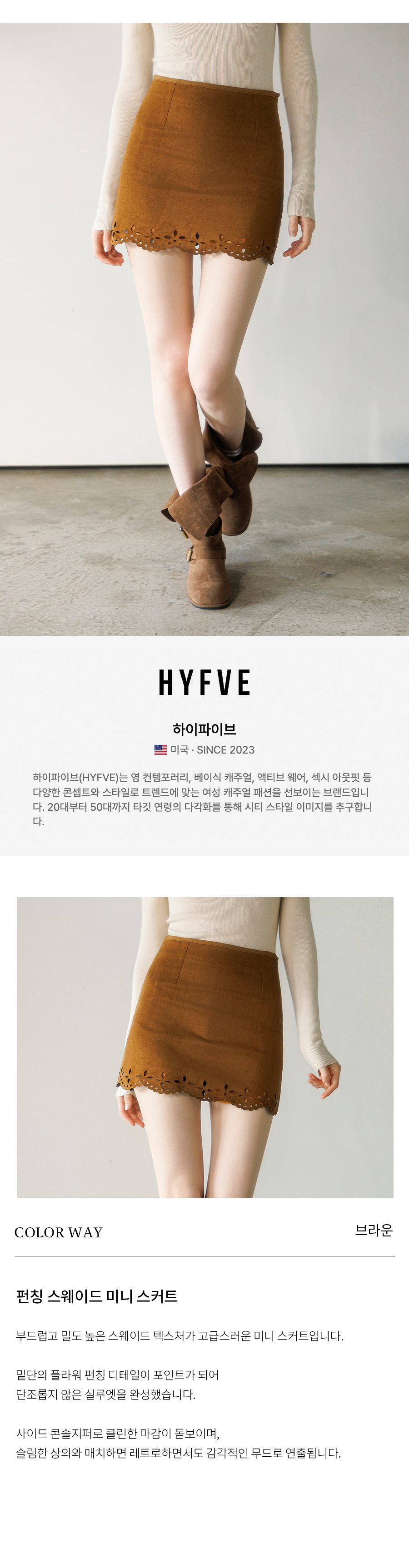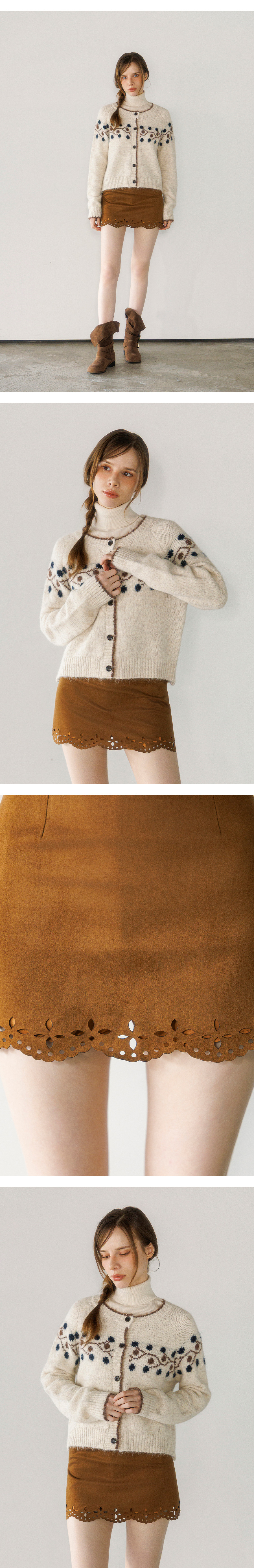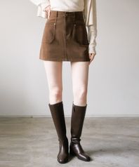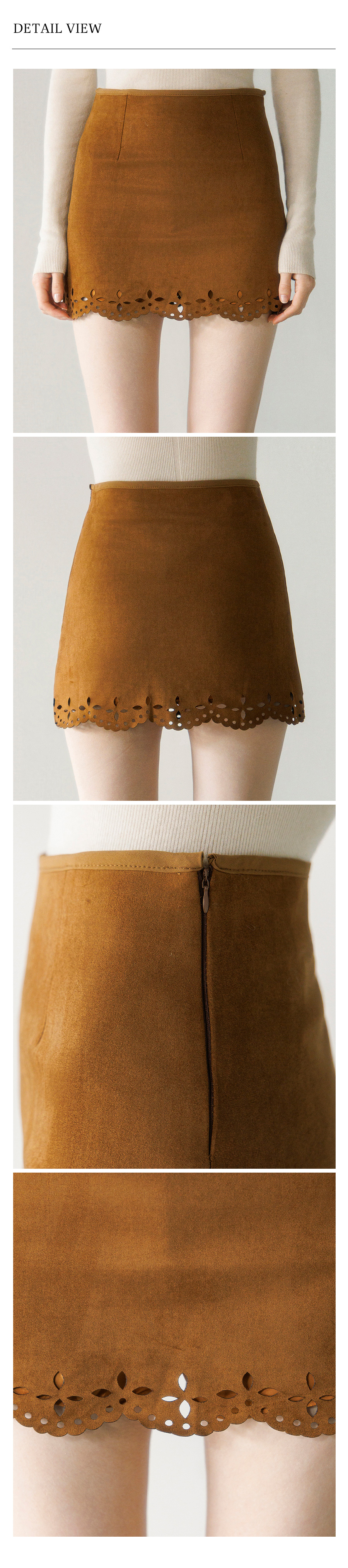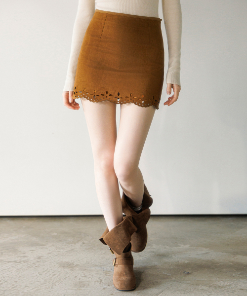 펀칭 스웨이드 미니 스커트