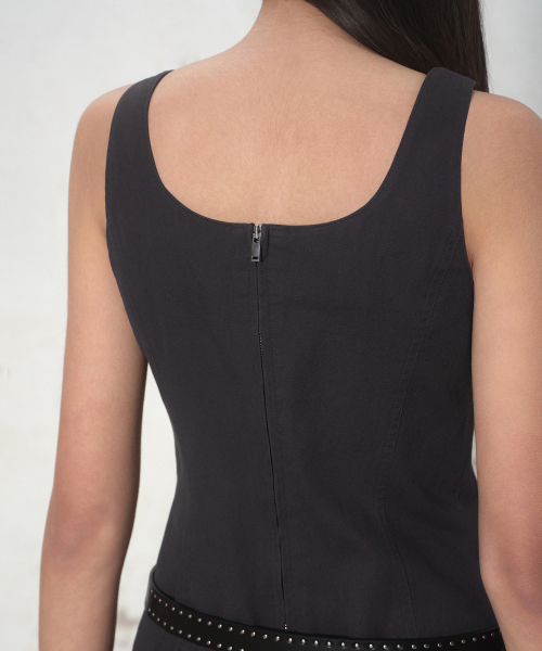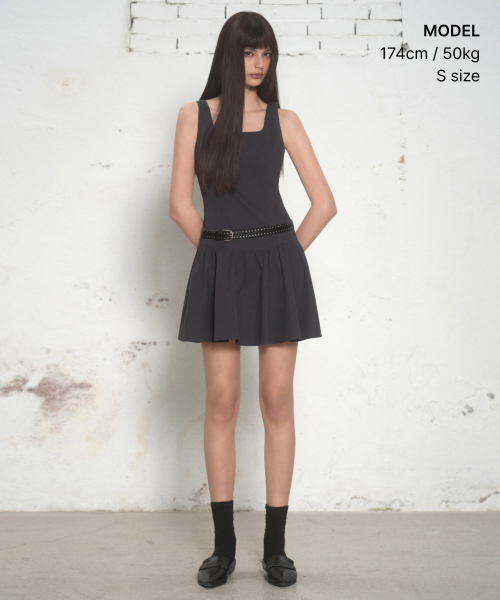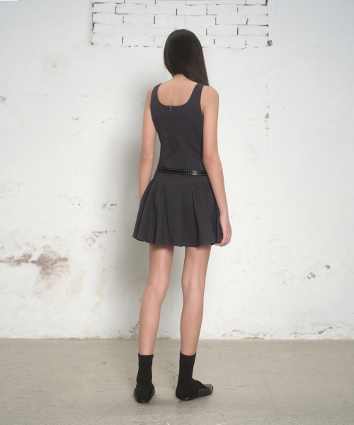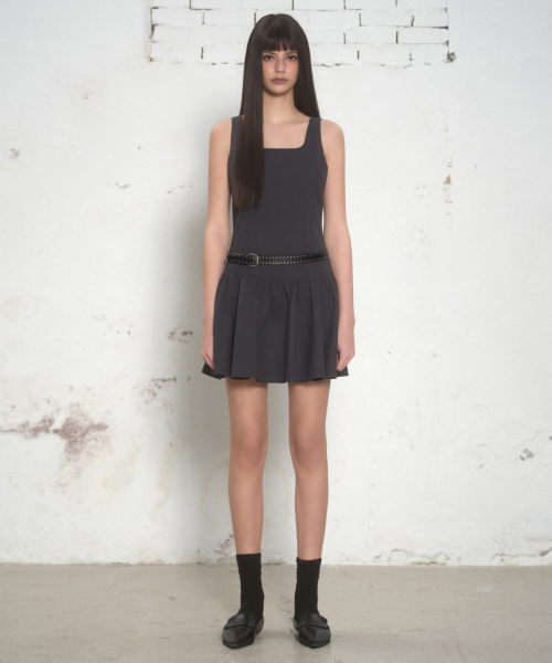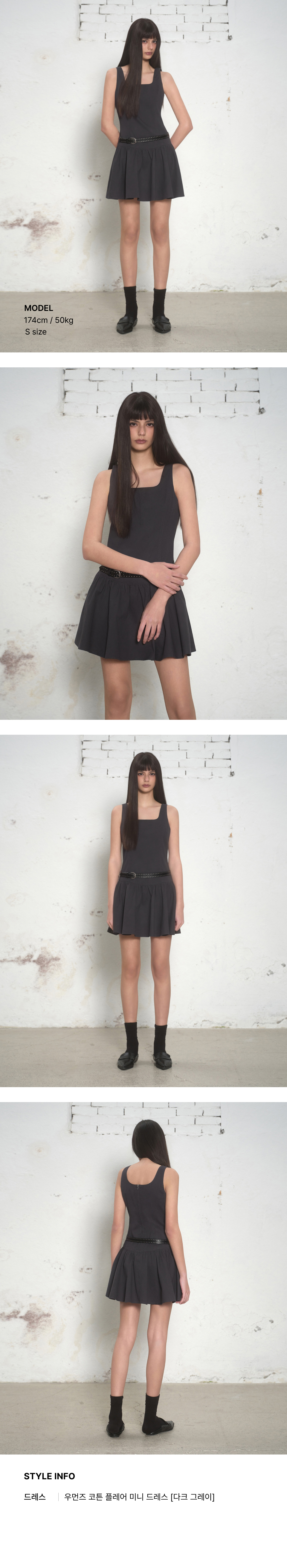 우먼즈 코튼 플레어 미니 드레스 [다크 그레이]
