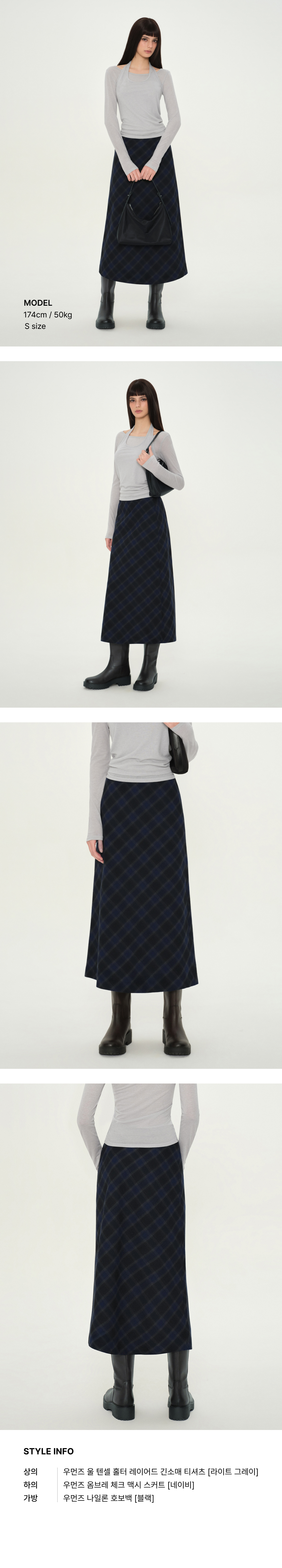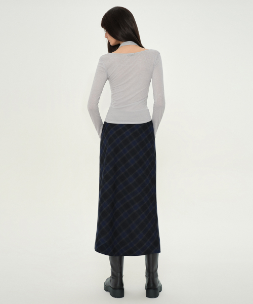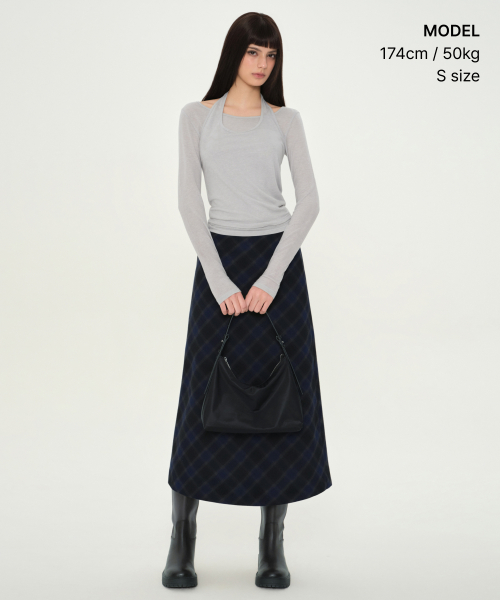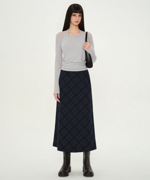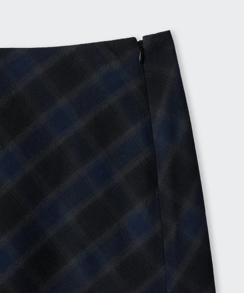 우먼즈 옴브레 체크 맥시 스커트 [네이비]