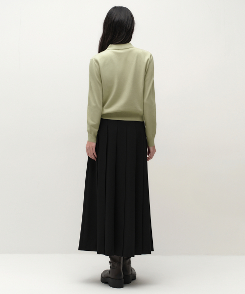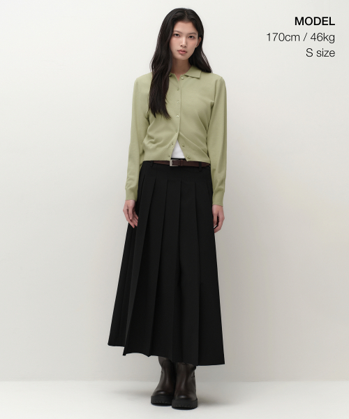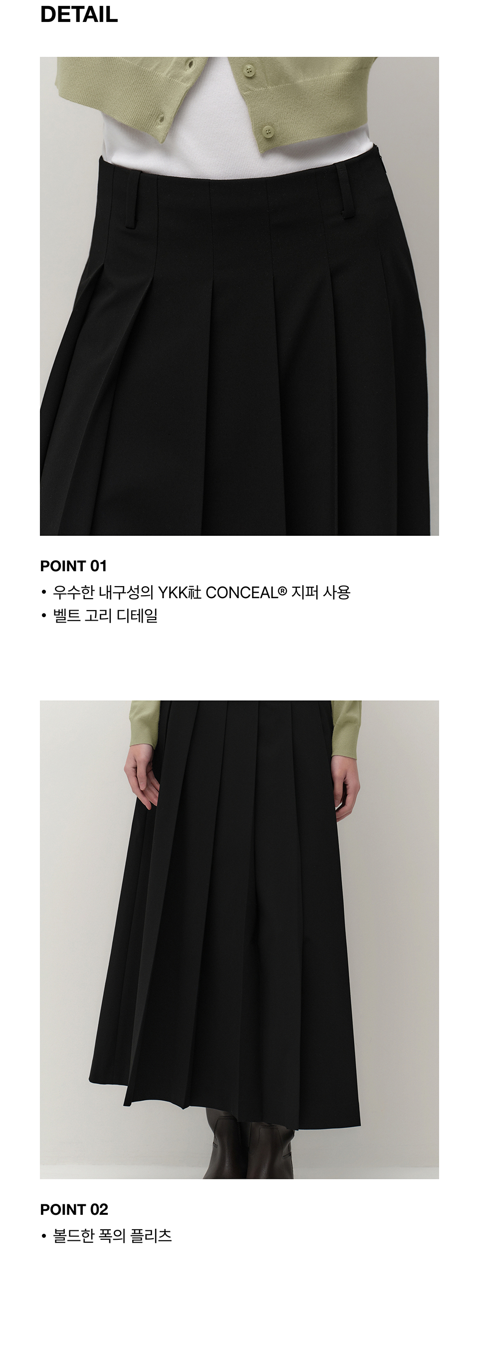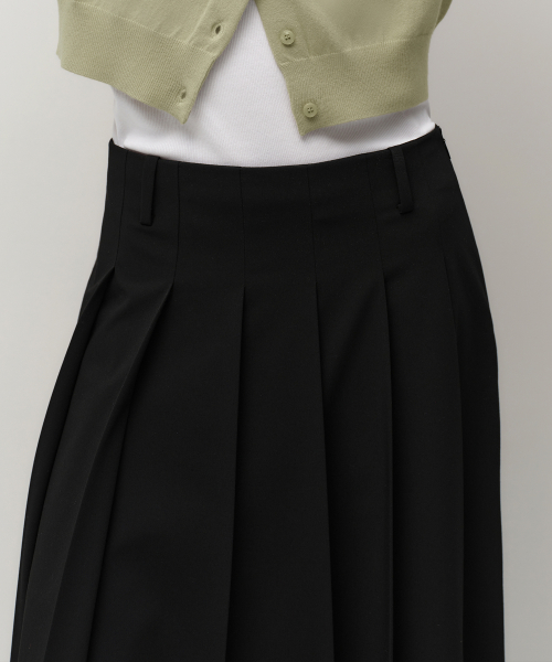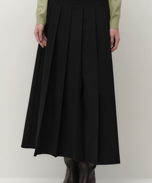 우먼즈 로 웨이스트 플리츠 맥시 스커트 [블랙]
