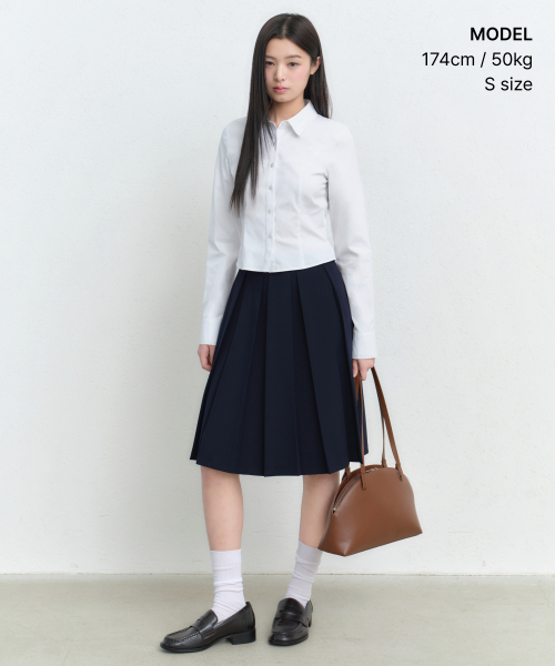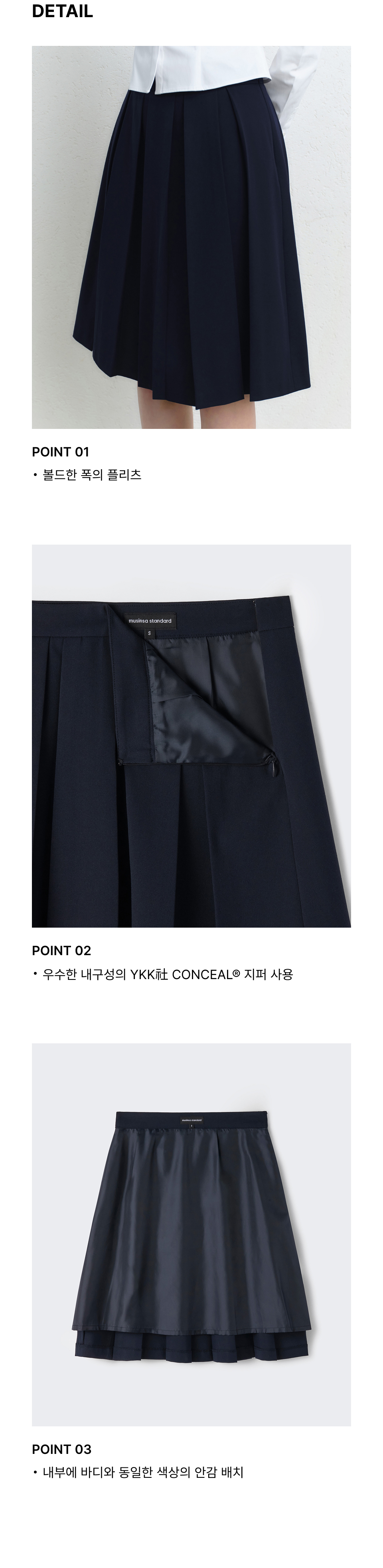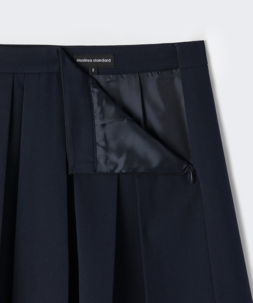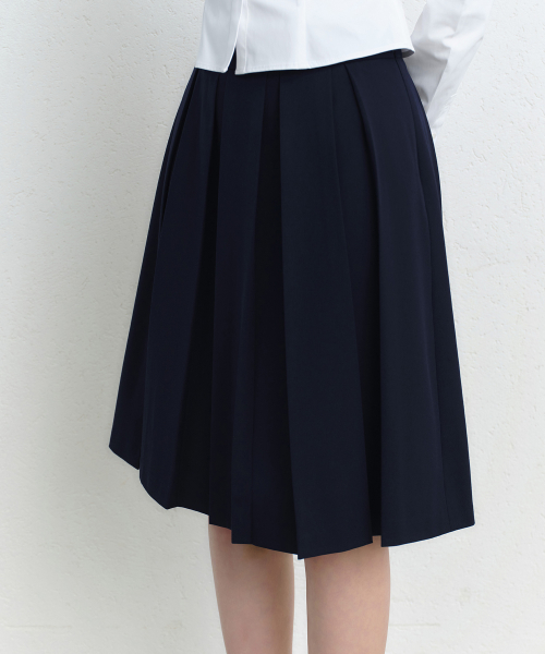 우먼즈 볼드 플리츠 니 렝스 스커트 [네이비]