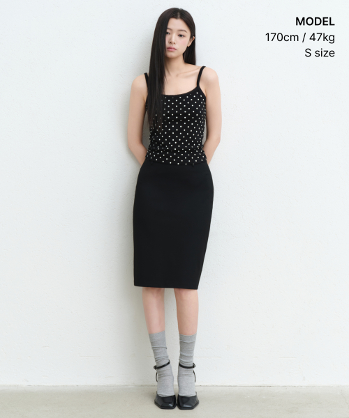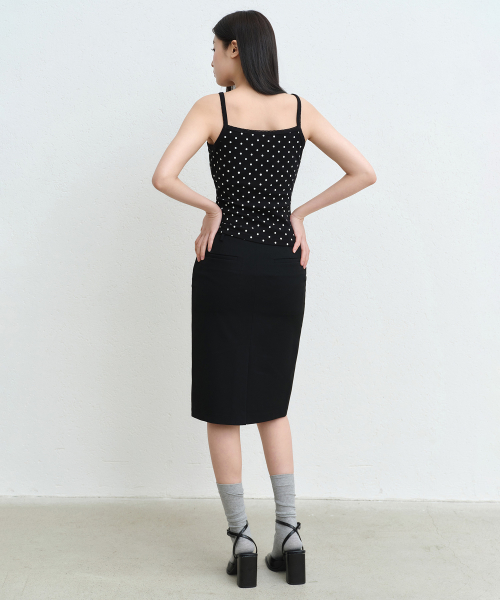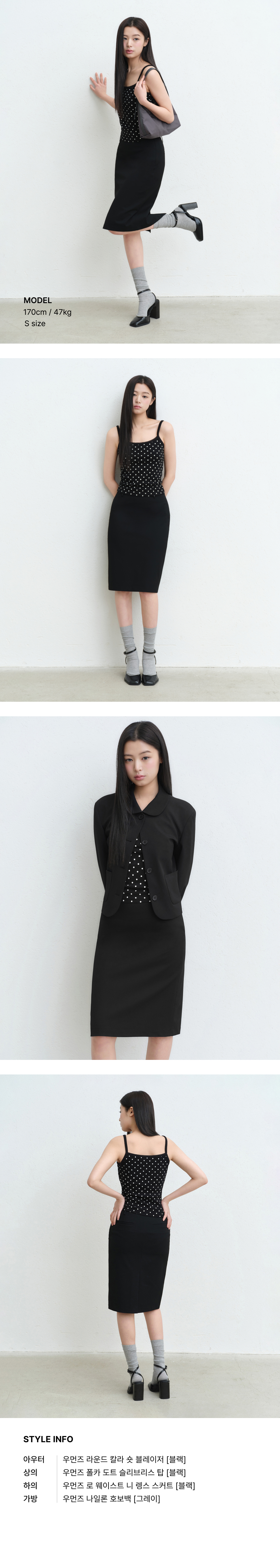 우먼즈 폴카 도트 슬리브리스 탑 [블랙]