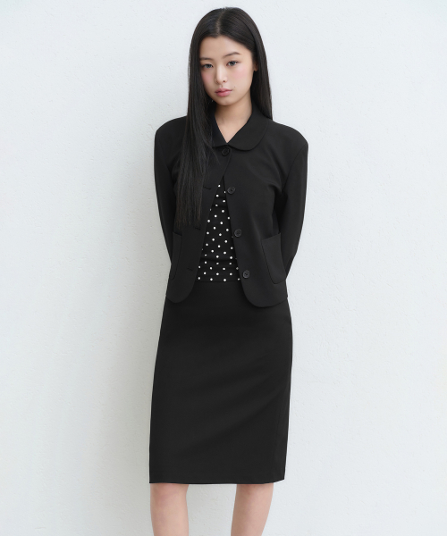 우먼즈 라운드 칼라 숏 블레이저 [블랙]