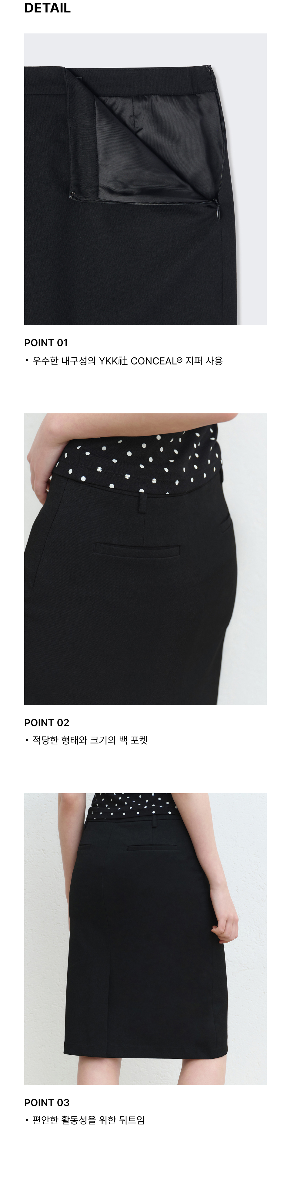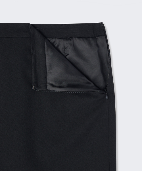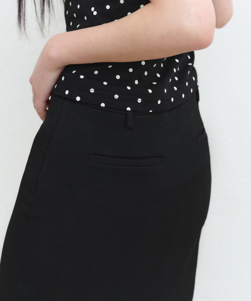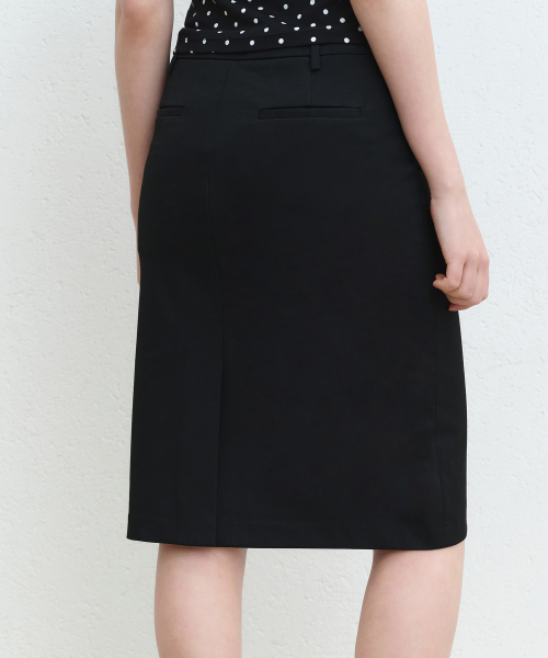 우먼즈 로 웨이스트 니 렝스 스커트 [블랙]