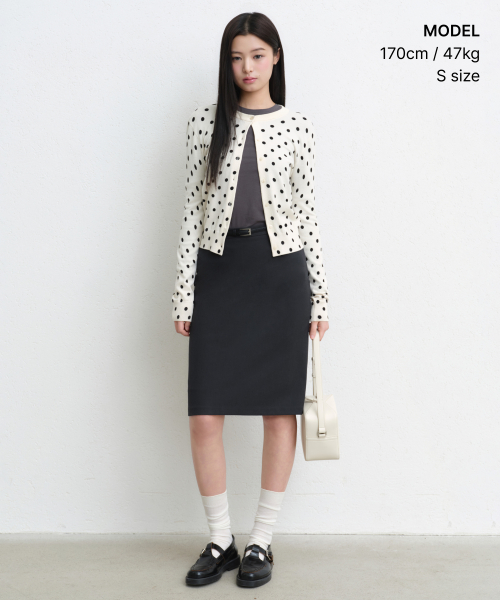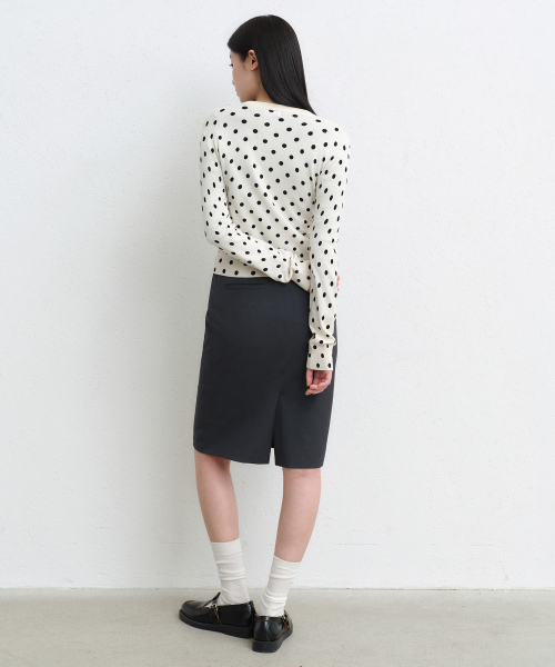 우먼즈 로 웨이스트 니 렝스 스커트 [그레이]