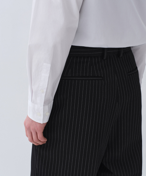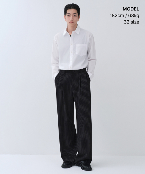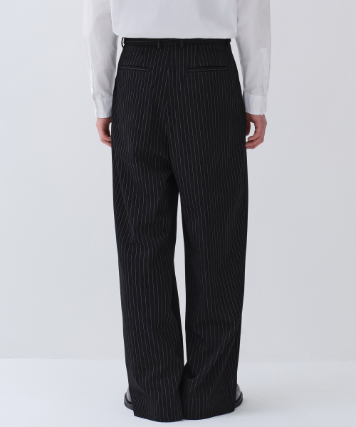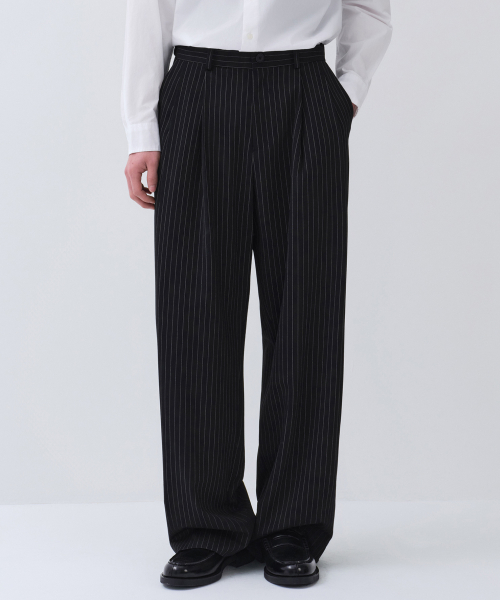 [서강준 PICK] 투 턱 와이드 핀 스트라이프 슬랙스 [BLACK]