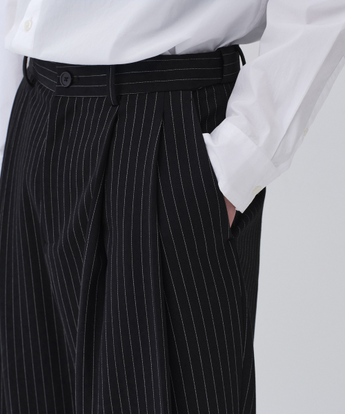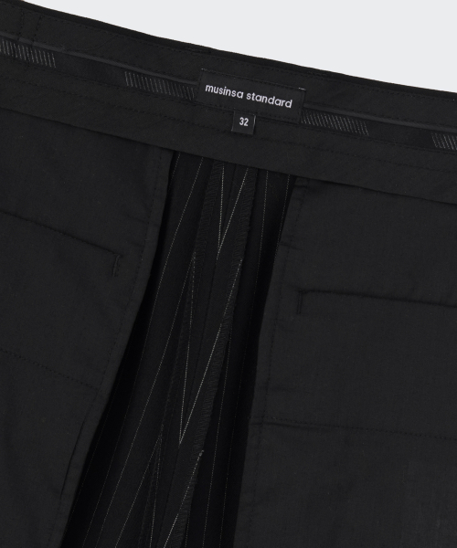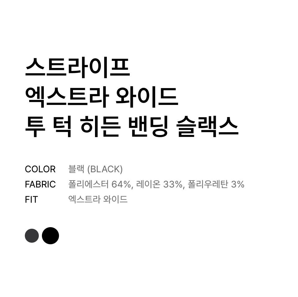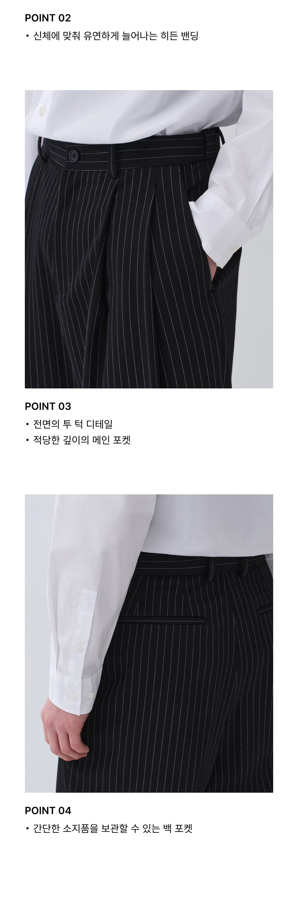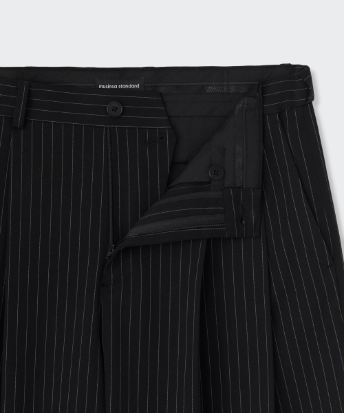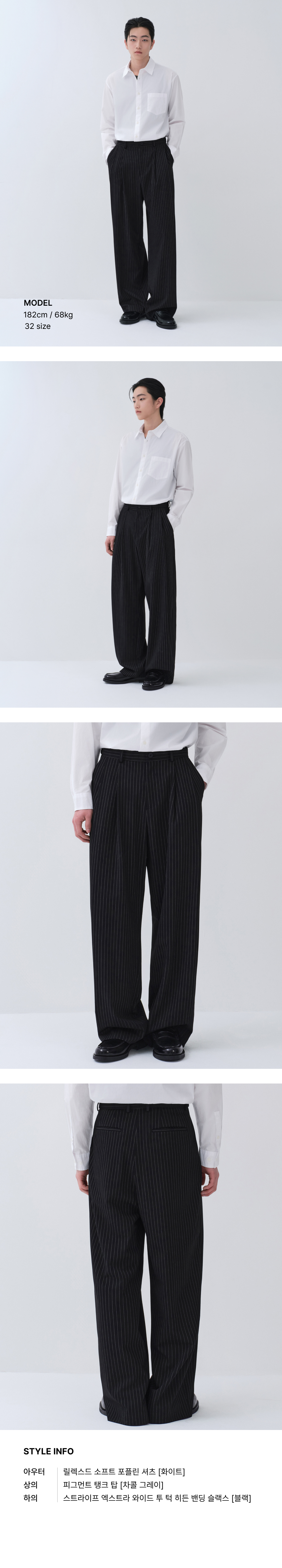 스트라이프 엑스트라 와이드 투 턱 히든 밴딩 슬랙스 [블랙]