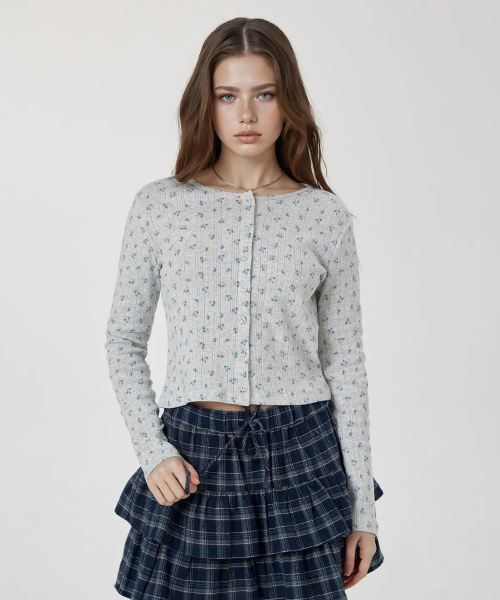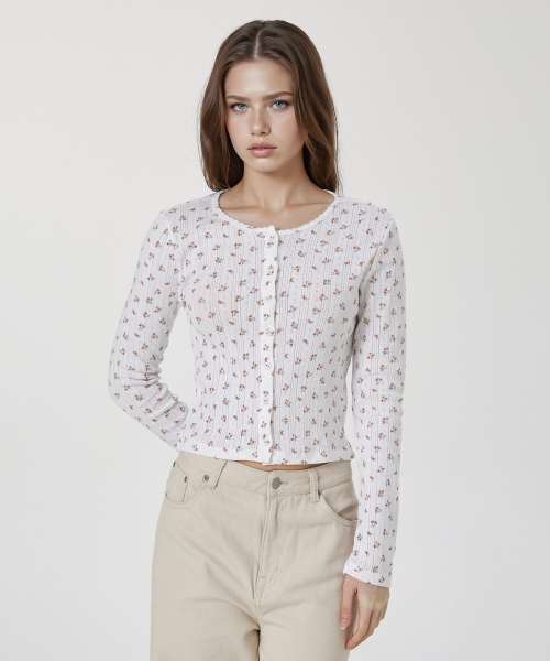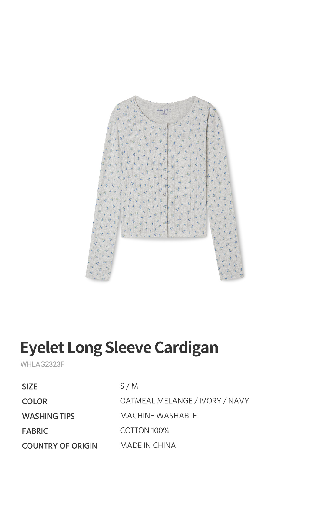 Eyelet Long Sleeve Cardigan / WHLAG2323F