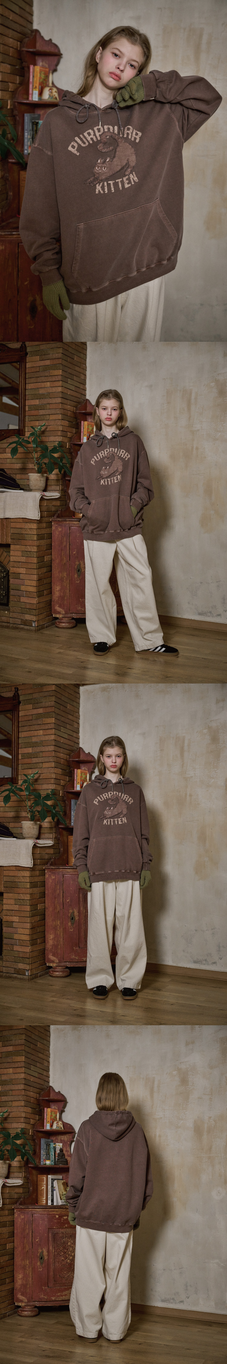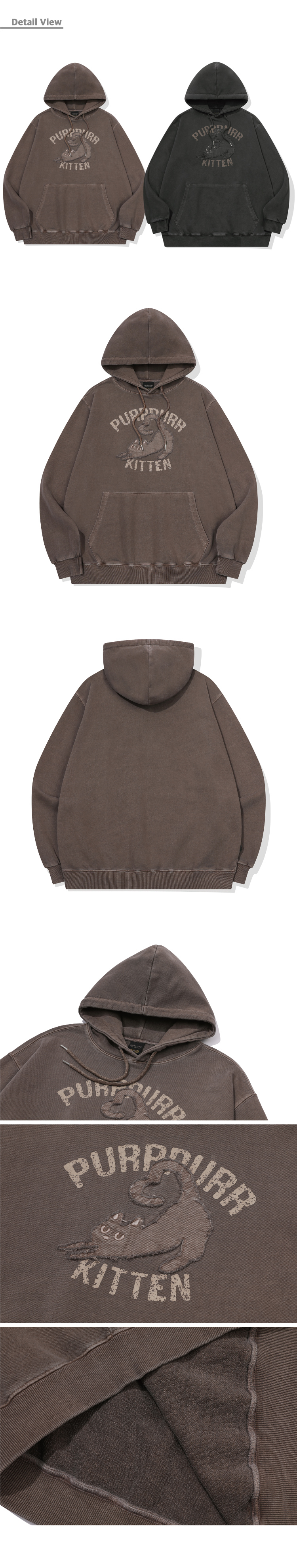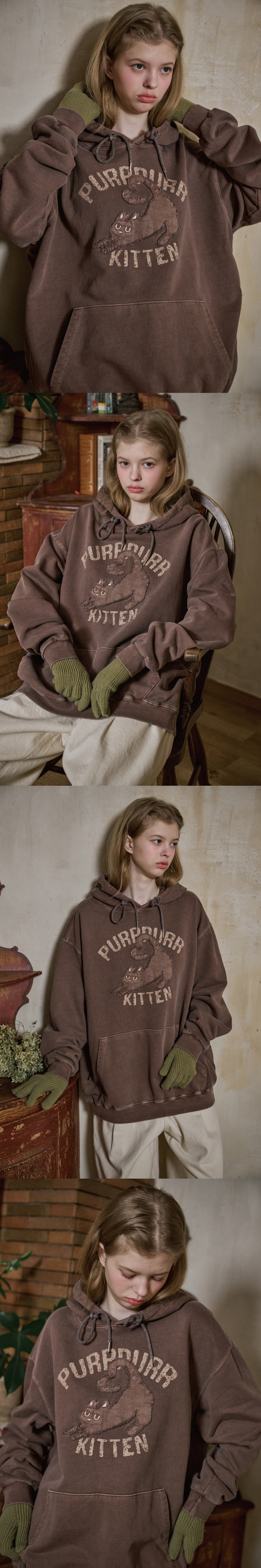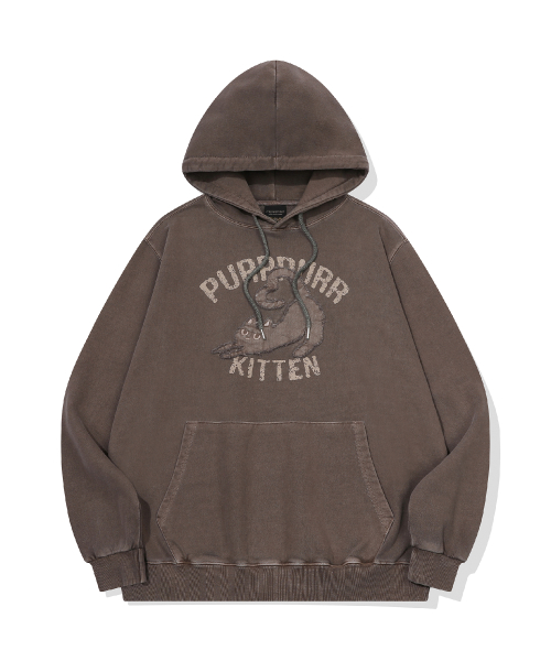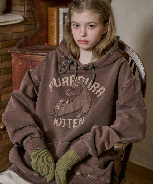 KITTEN 패치 피그먼트 후드티 브라운