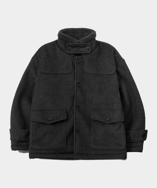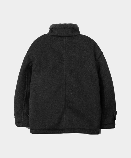 하이넥 스웨이드 스탠다드 빅포켓 부클 하프 싱글 코트 자켓[블랙]