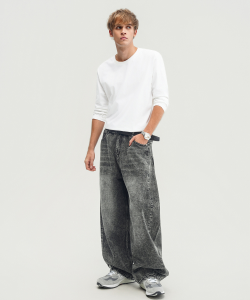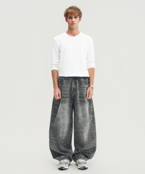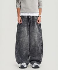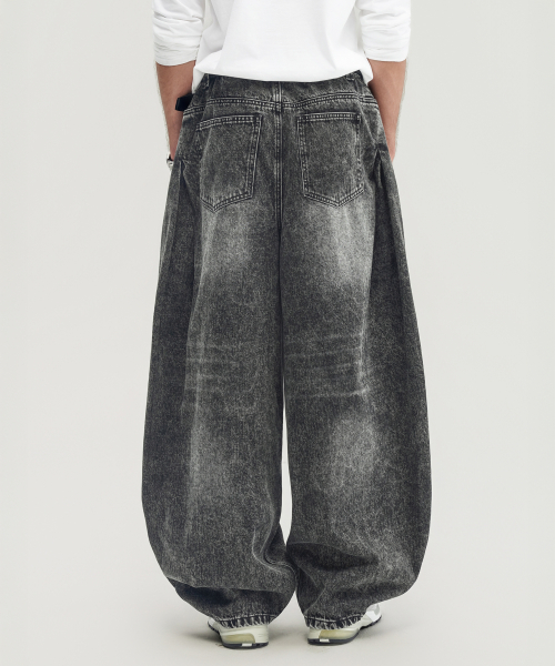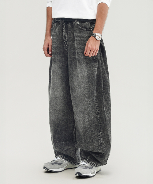 블랙 워시드 벌룬 슈퍼 와이드 데님 팬츠