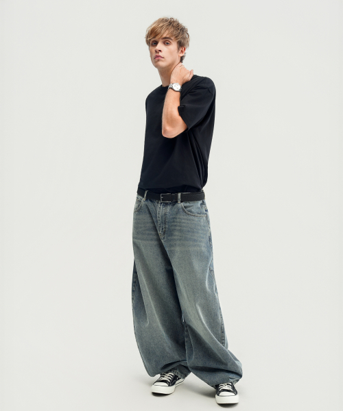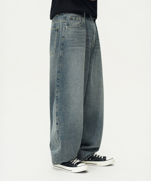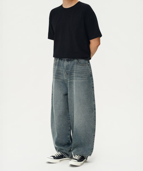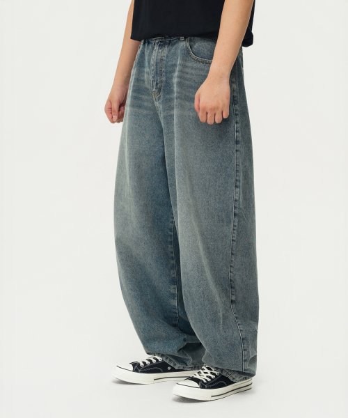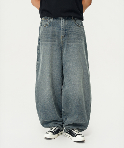 심플 벌룬핏 와이드 데님 팬츠 (WASHED INDIGO)