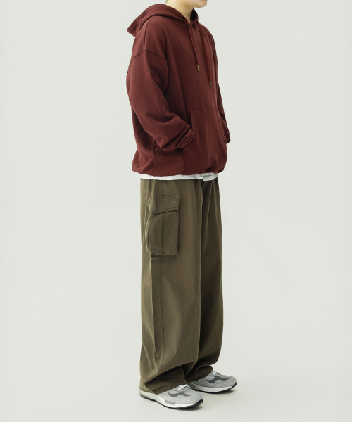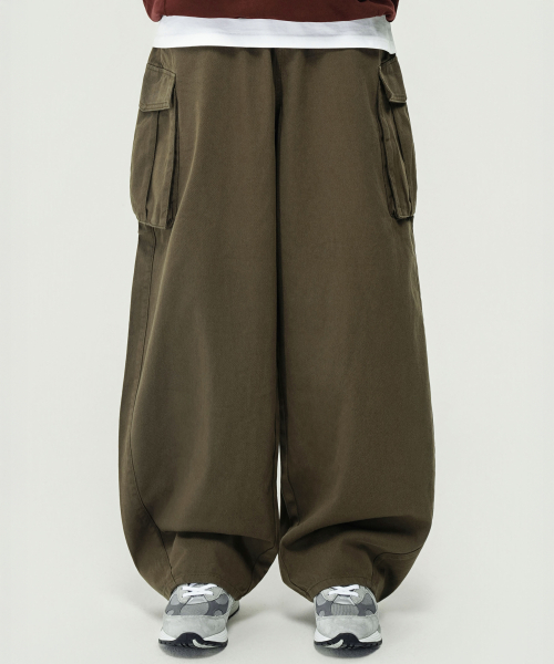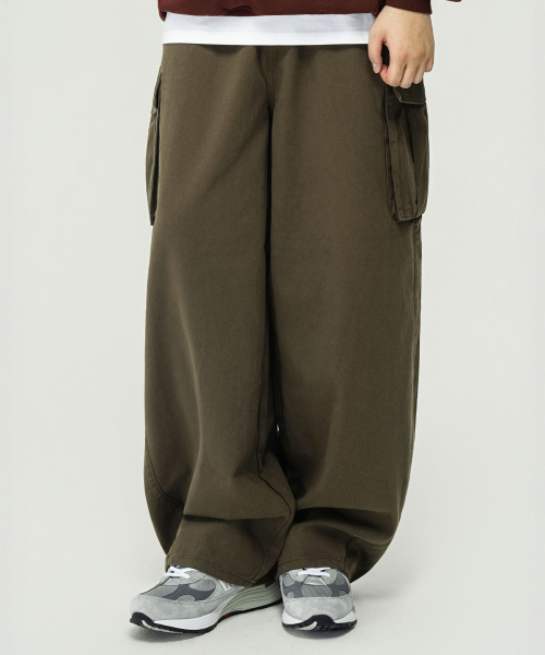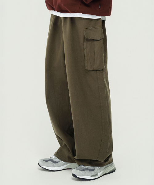 와이드 커브드 카고 코튼 팬츠 (KHAKI)