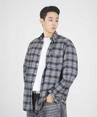 오버핏 그래픽 체크셔츠 (MIXED GREY)