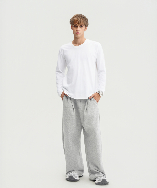 컴포트 원턱 와이드 스웻 팬츠 (MELANGE GREY)
