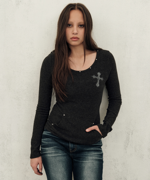 시스루 NAME 5 아트워크 롱 슬리브 [퍼플 그레이]