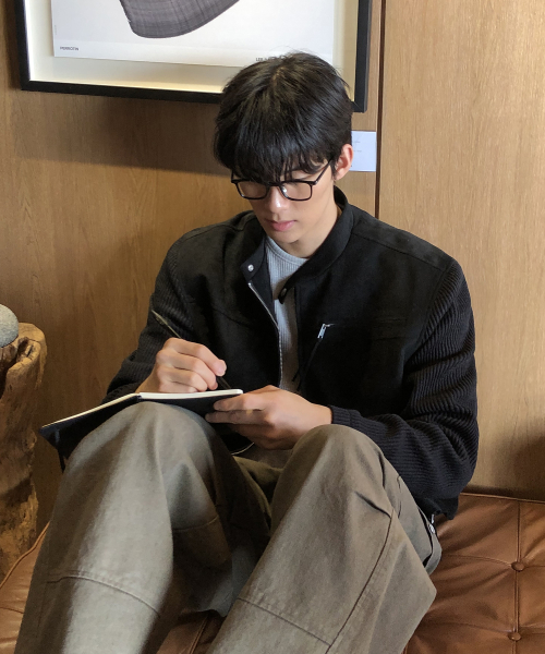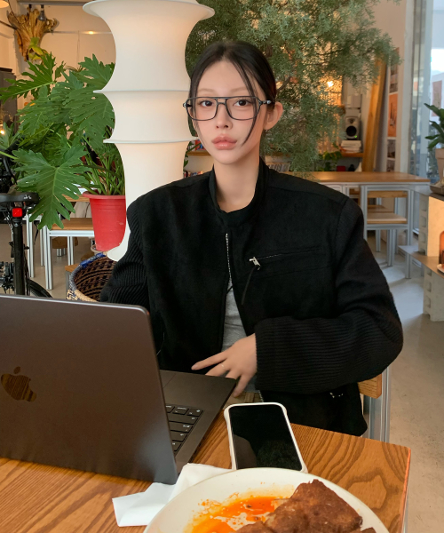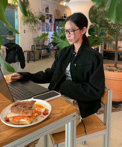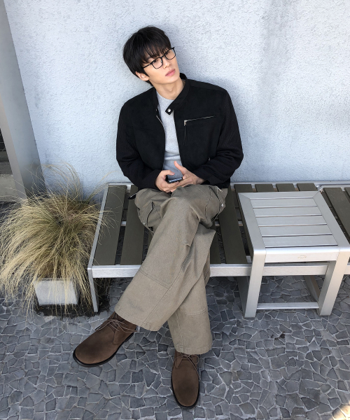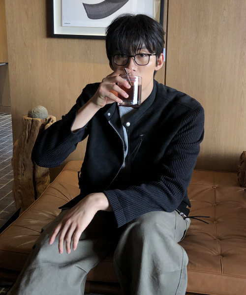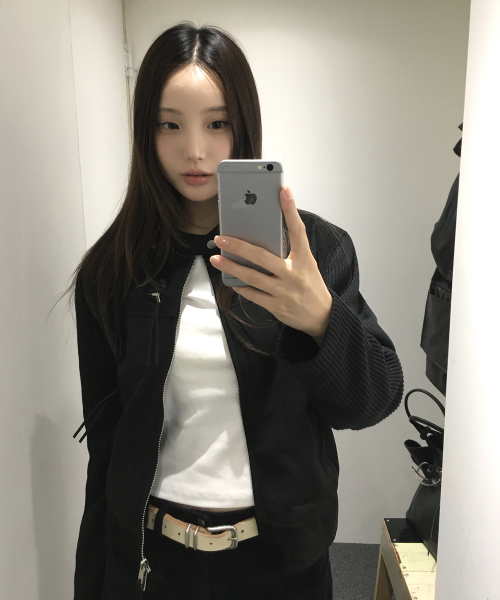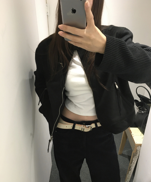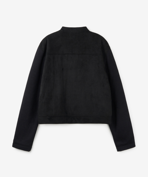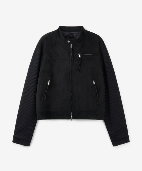 크롭 니트 스웨이드 바이커 자켓_BLACK