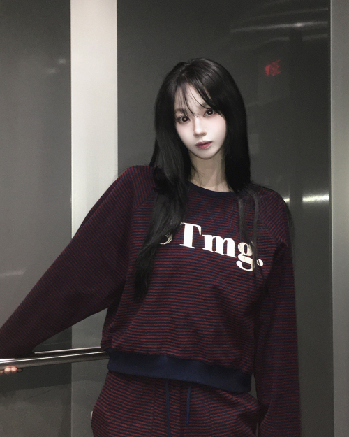 stmg 스몰 로고 스트라이프 맨투맨 그레이