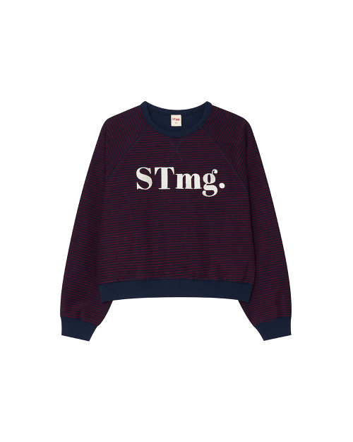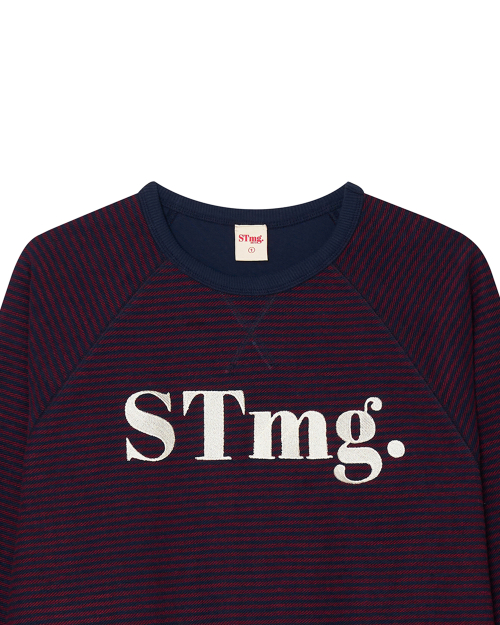 stmg 스퀘어 로고 스트라이프 맨투맨 네이비