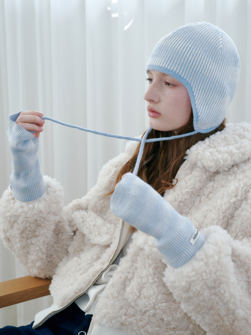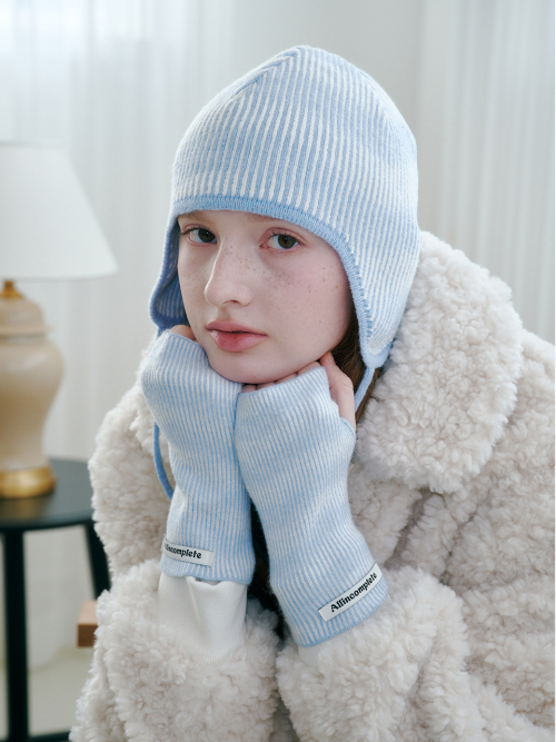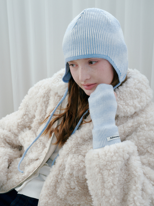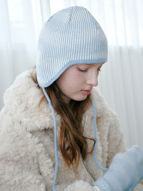 무아레 웨이브 이어플랩 비니 (스카이 블루)