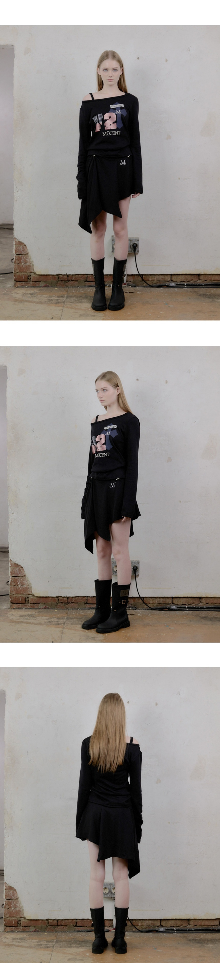 누아즈 셔링 언발란스 스커트