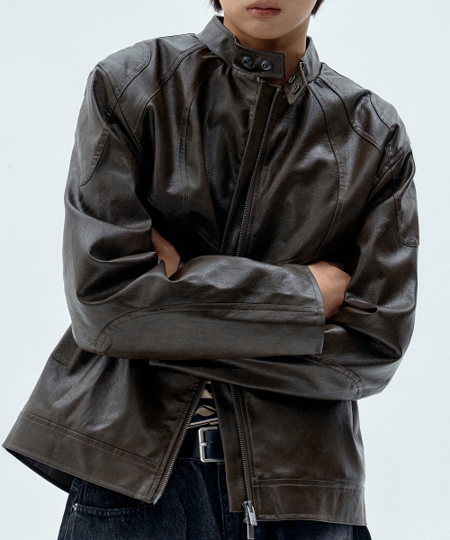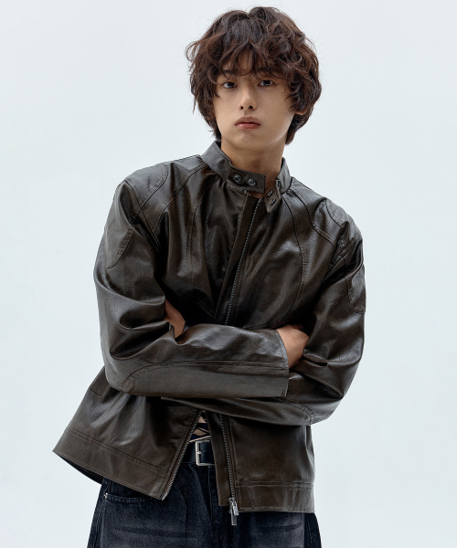 숄더 인시전 포인트 빈티지 윈터 패디드 라이더 레더 자켓 [브라운]