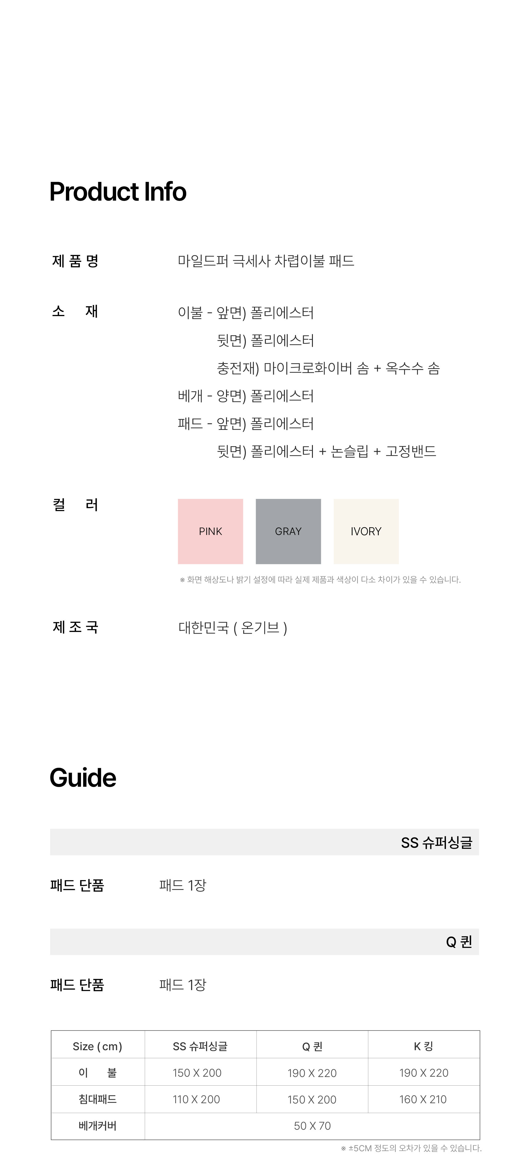 마일드퍼 극세사 침대 패드 3colors(SS/Q/K)
