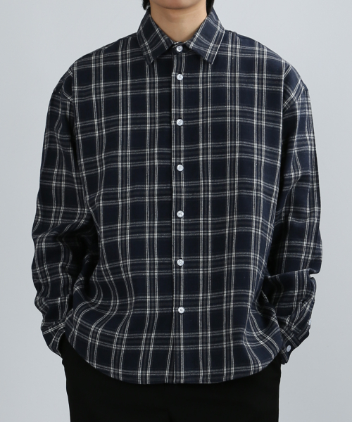 릴렉스드 플란넬 플레이드 옴브레 체크 셔츠 [그레이/브라운]
