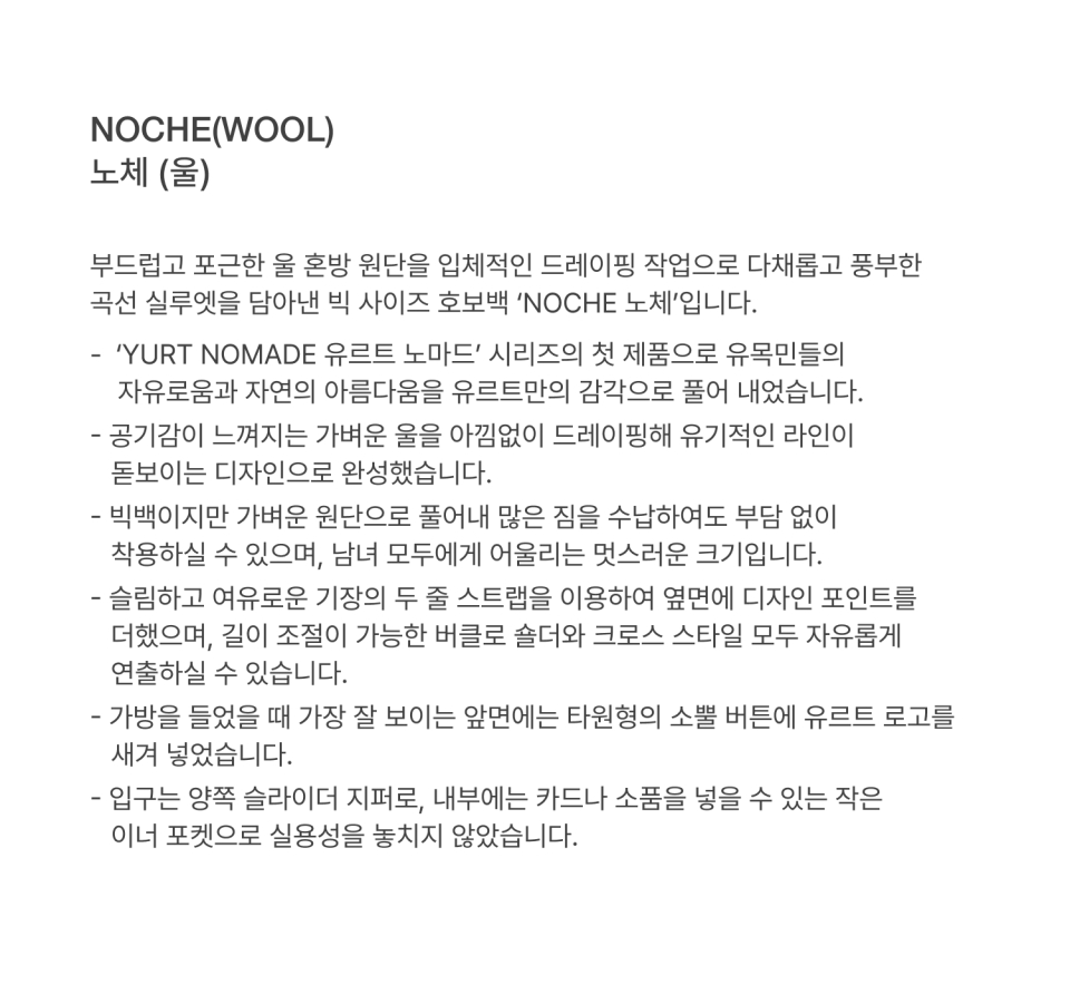 유르트(YURT)의 디자인은 자연에서 빌려온 소재로부터 시작합니다. 시간의 흐름이 오롯이 담긴 자연은 그 자체로도 유르트의 영감이 되어 구현되고는 합니다. 자연의 오묘하고 정직한 아름다움을 브랜드만의 방식으로 담백하게 풀어내고자 합니다.