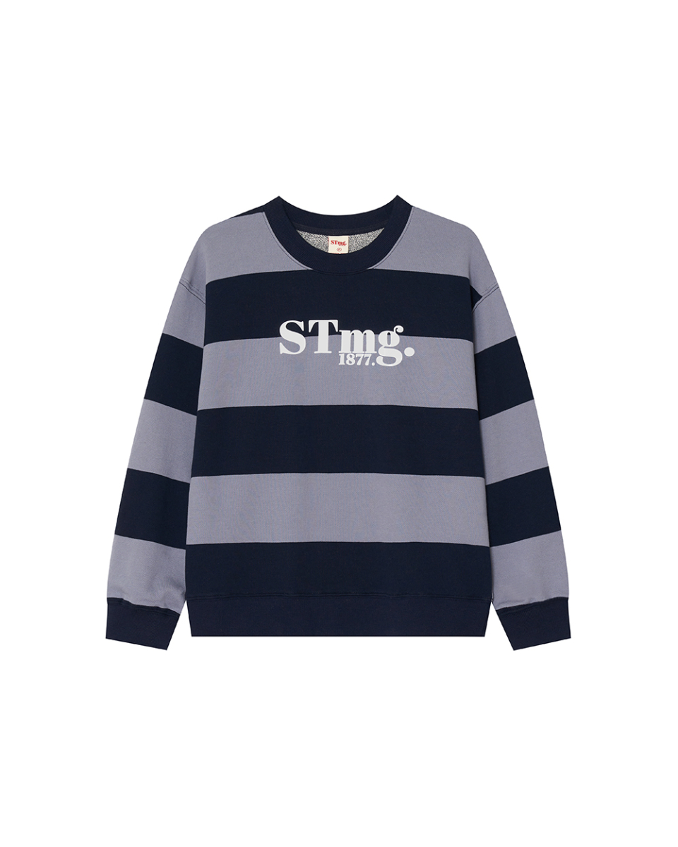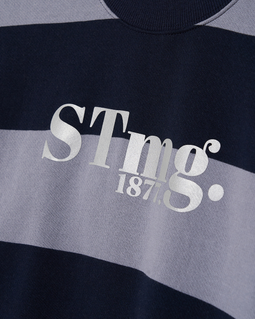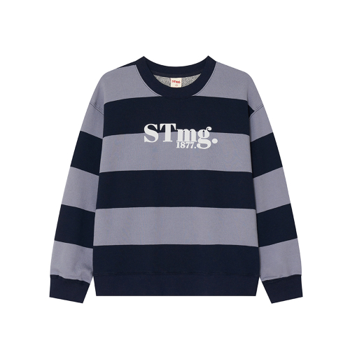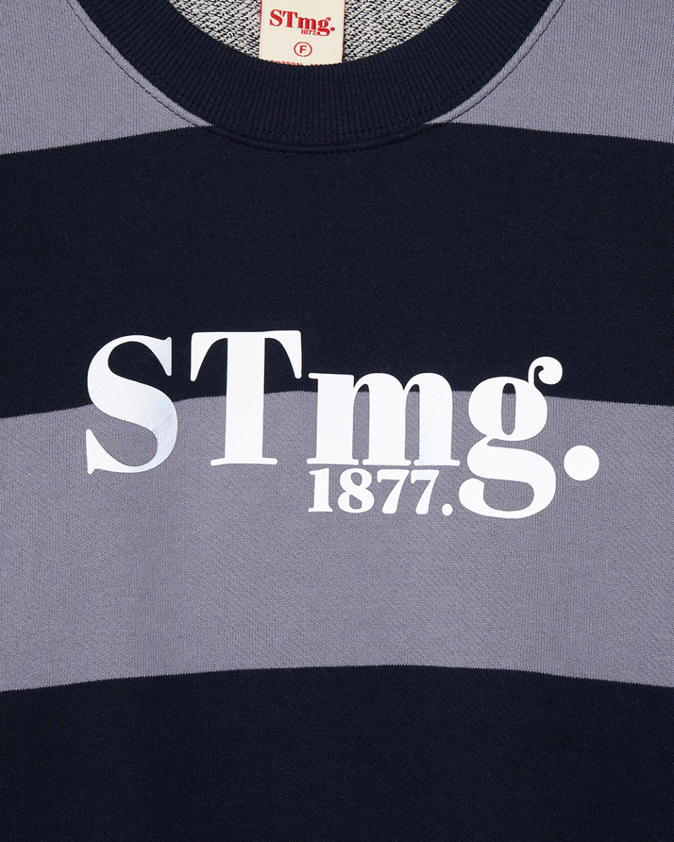 stmg 스퀘어 로고 스트라이프 맨투맨 네이비