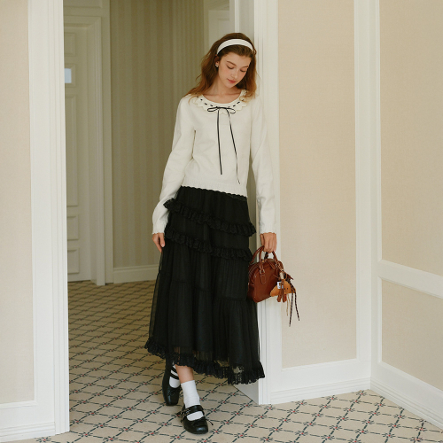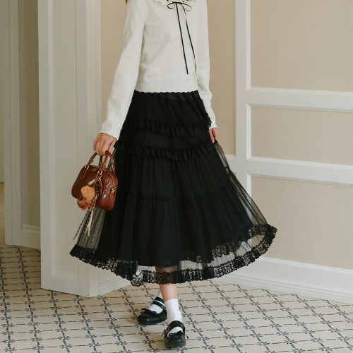 Cest_Autumn mesh ruffle skirt