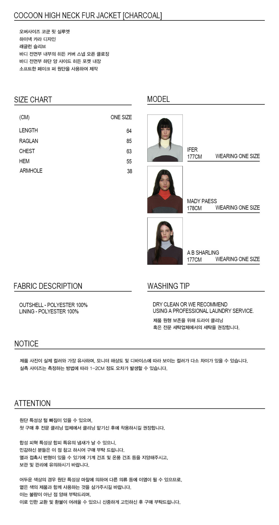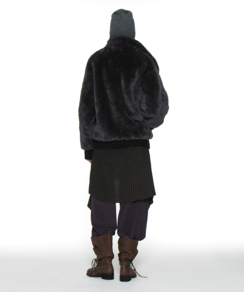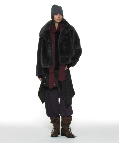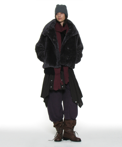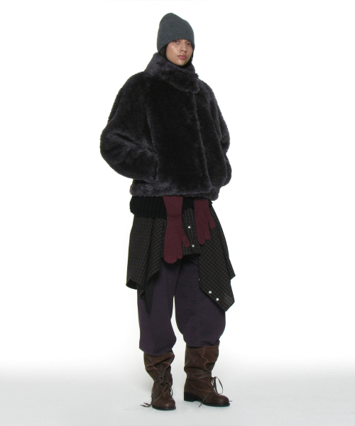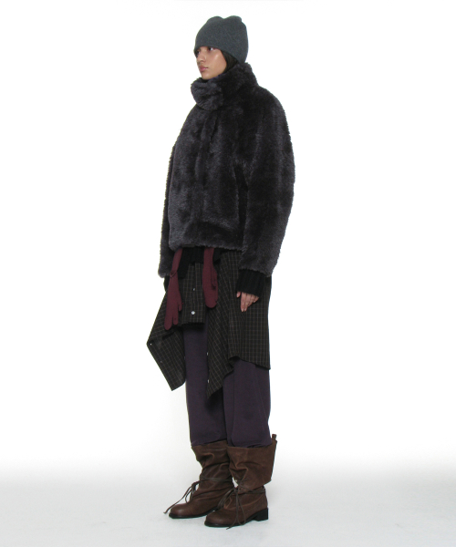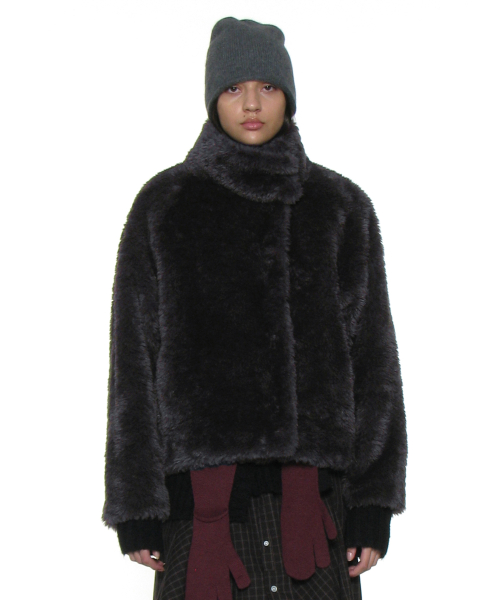 코쿤 하이넥 퍼 자켓_차콜