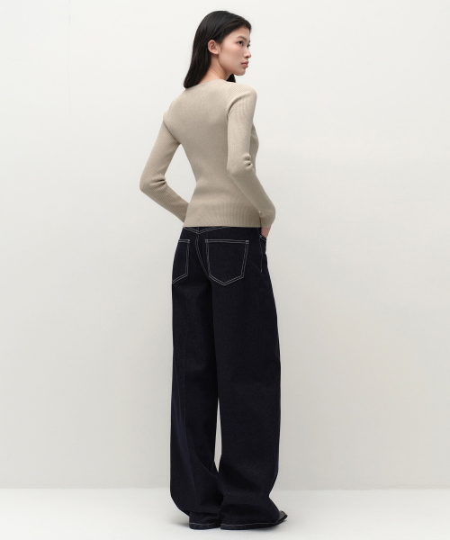 [한소희 PICK] 우먼즈 커브드 데님 팬츠 [미디엄 인디고]