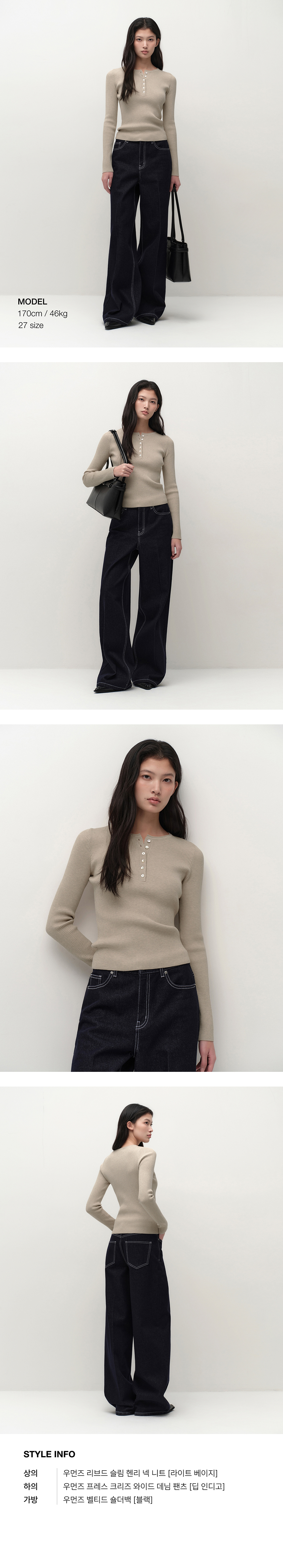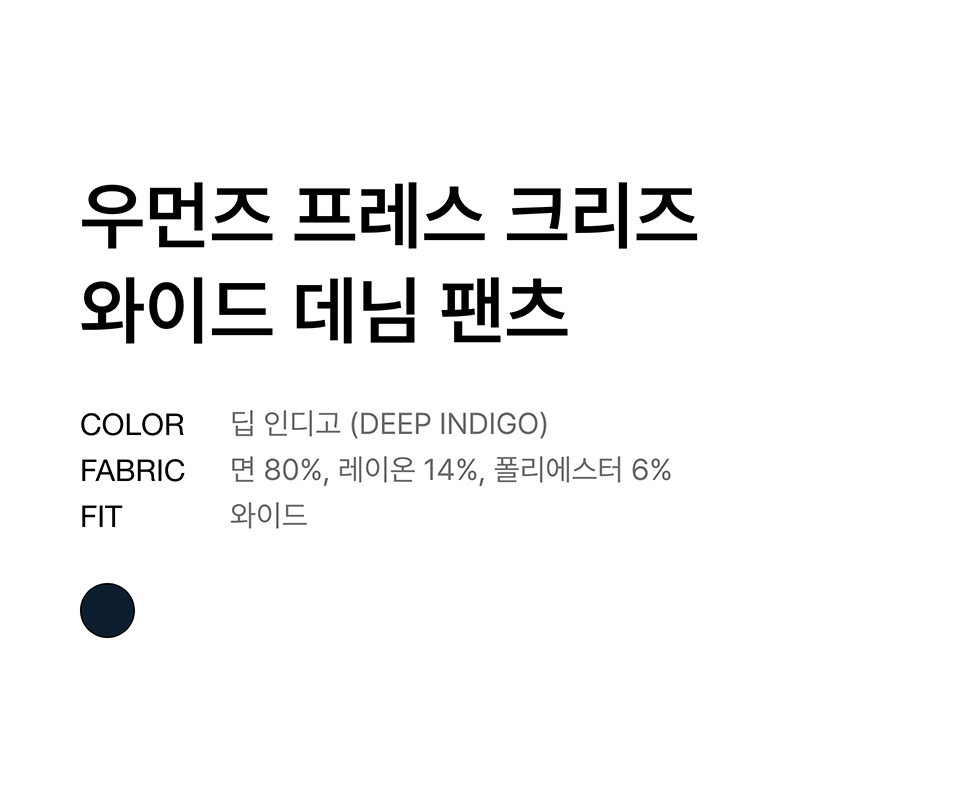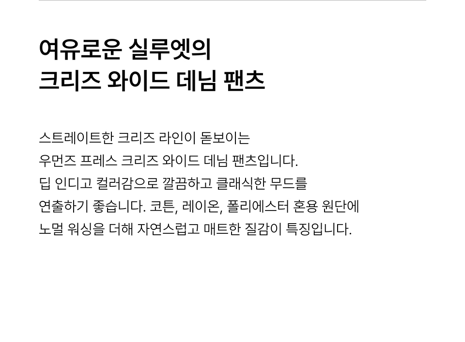 우먼즈 프레스 크리즈 와이드 데님 팬츠 [딥 인디고]