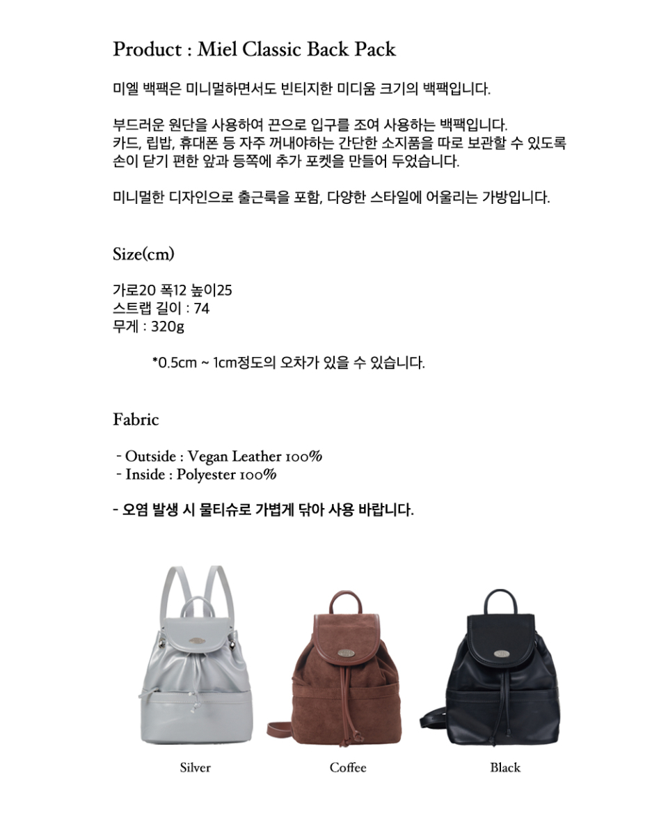 미엘 클래식 백팩 / 커피(스웨이드)
