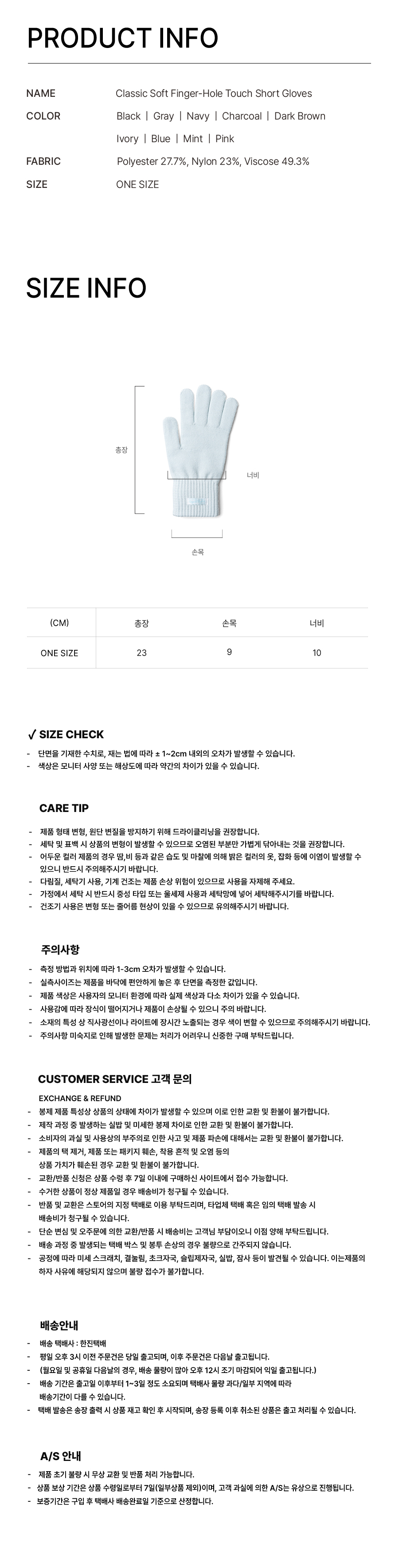 [2PACK] 클래식 소프트 핑거홀 터치 숏 장갑_9colors