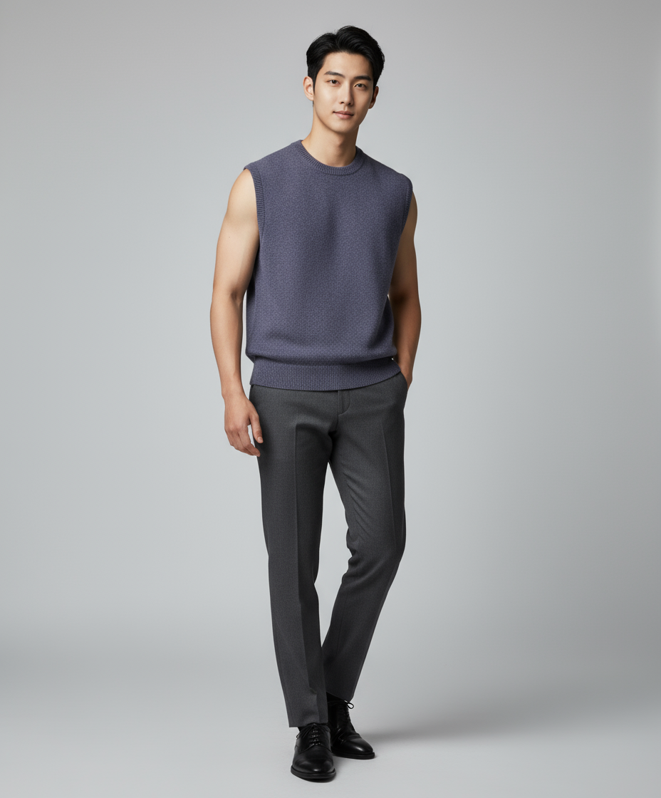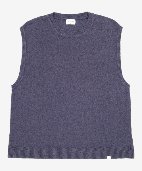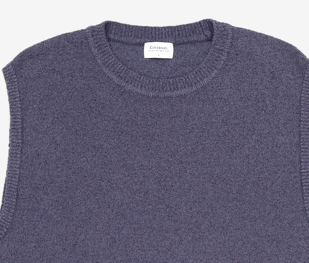 부클 믹스드 니트 베스트 블루차콜 M