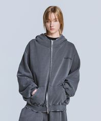 빈티지 워싱 피그먼트 후드 집업 - 차콜
