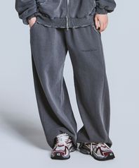빈티지 워싱 피그먼트 와이드 팬츠 - 차콜